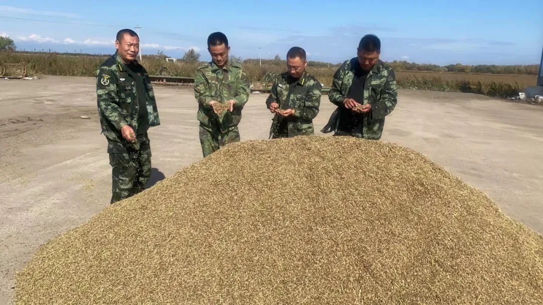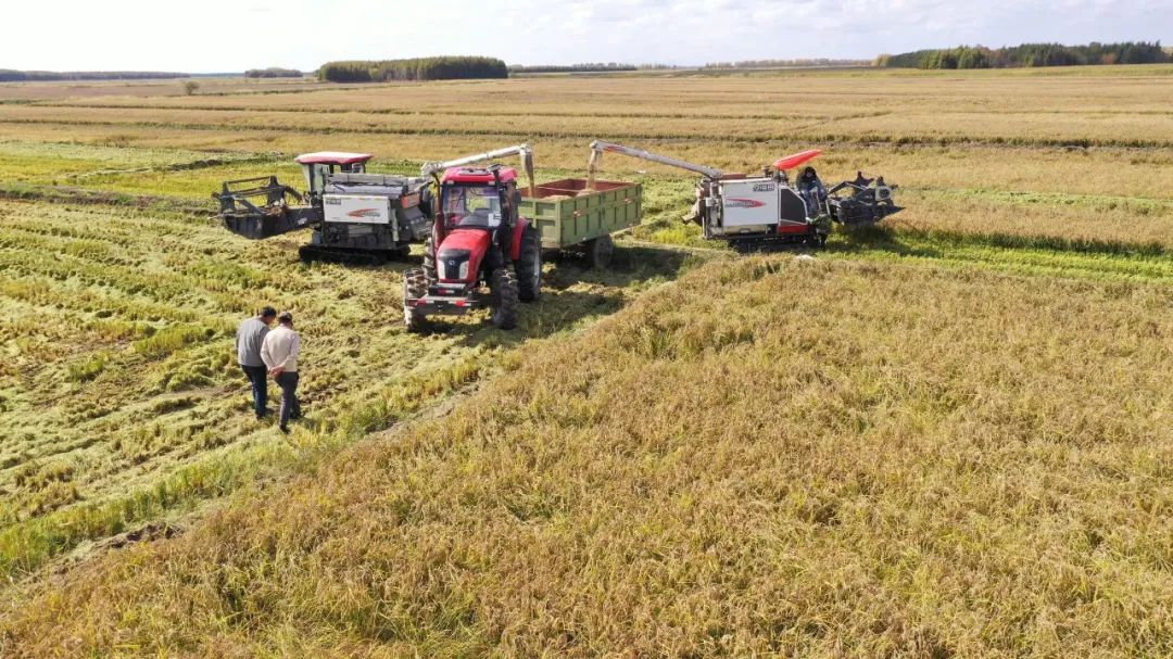 大型联合收割机在金色的稻浪中来回穿梭,留下一排排整齐的稻茬,水稻切割、脱粒、装车的历程如诗如画,稻田里,加入秋收的职工在捡拾稻穗,好一派秋收忙碌景象。因受大风天气影响,部分地块稻穗倒伏,他们接纳大型联合收割机和人工收割相结合的方法,在节省人力、物资的同时,又提高了事情效率,最大限度地降低田间损失。经过7天的收割会战,117公顷稻田全部收割完毕,161万余斤稻谷全部入库贮存,亩产抵达918斤。